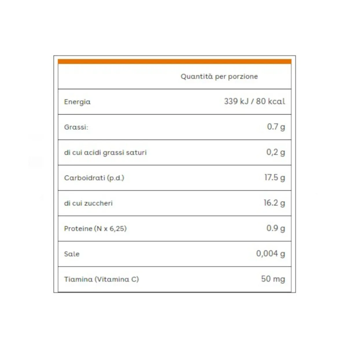 Purea di frutta (99%) (banana 64%, mela 35%), succo di limone concentrato, vitamina C.