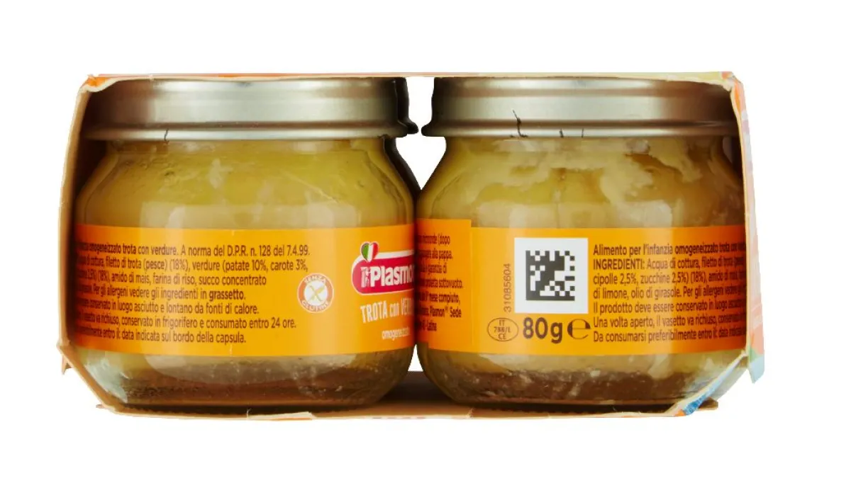 Gli omogeneizzati di pesce Plasmon sono studiati per fornire al bambino proteine ad elevato valore biologico provenienti esclusivamente dal pesce. Il pesce omogeneizzato è ideale per variare l’alimentazione del tuo bambino e abituarlo al sapore del pesce, un alimento importante anche per i bambini. Gli omogeneizzati non contengono coloranti e conservanti, come per legge.