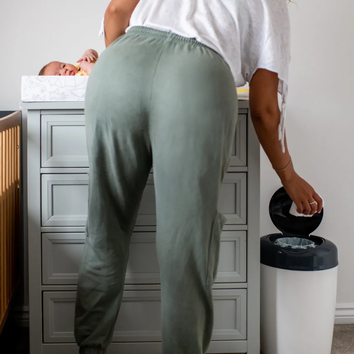 Il mangiapannolini può contenere fino a 18 pannolini*, evitandoti numerosi viaggi alla pattumiera all’esterno, ma è abbastanza compatto da adattarsi alla camera di un bambino.