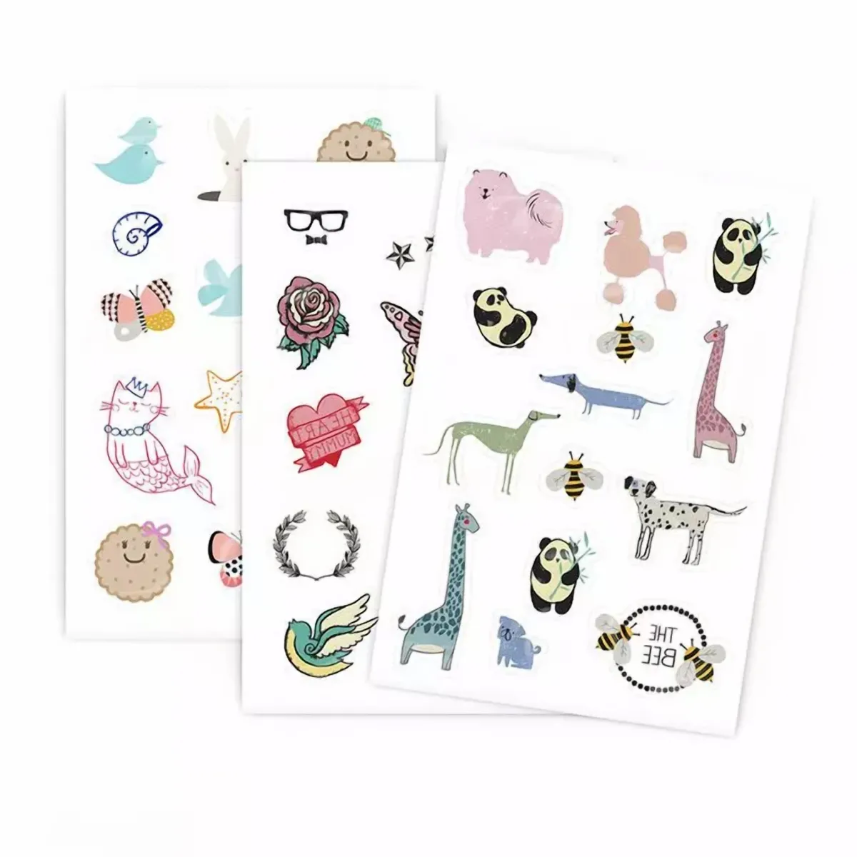 Ogni confezione contiene 14 tatuaggi temporanei, decorati con fantasie colorate, pensati per bambini a partire dai tre anni.