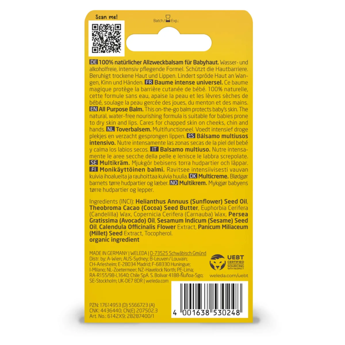 Weleda Baby Balsamo Multiuso crea istantaneamente un naturale scudo protettivo contro la secchezza della pelle in caso di clima freddo e rigido. Formato: 25 gr