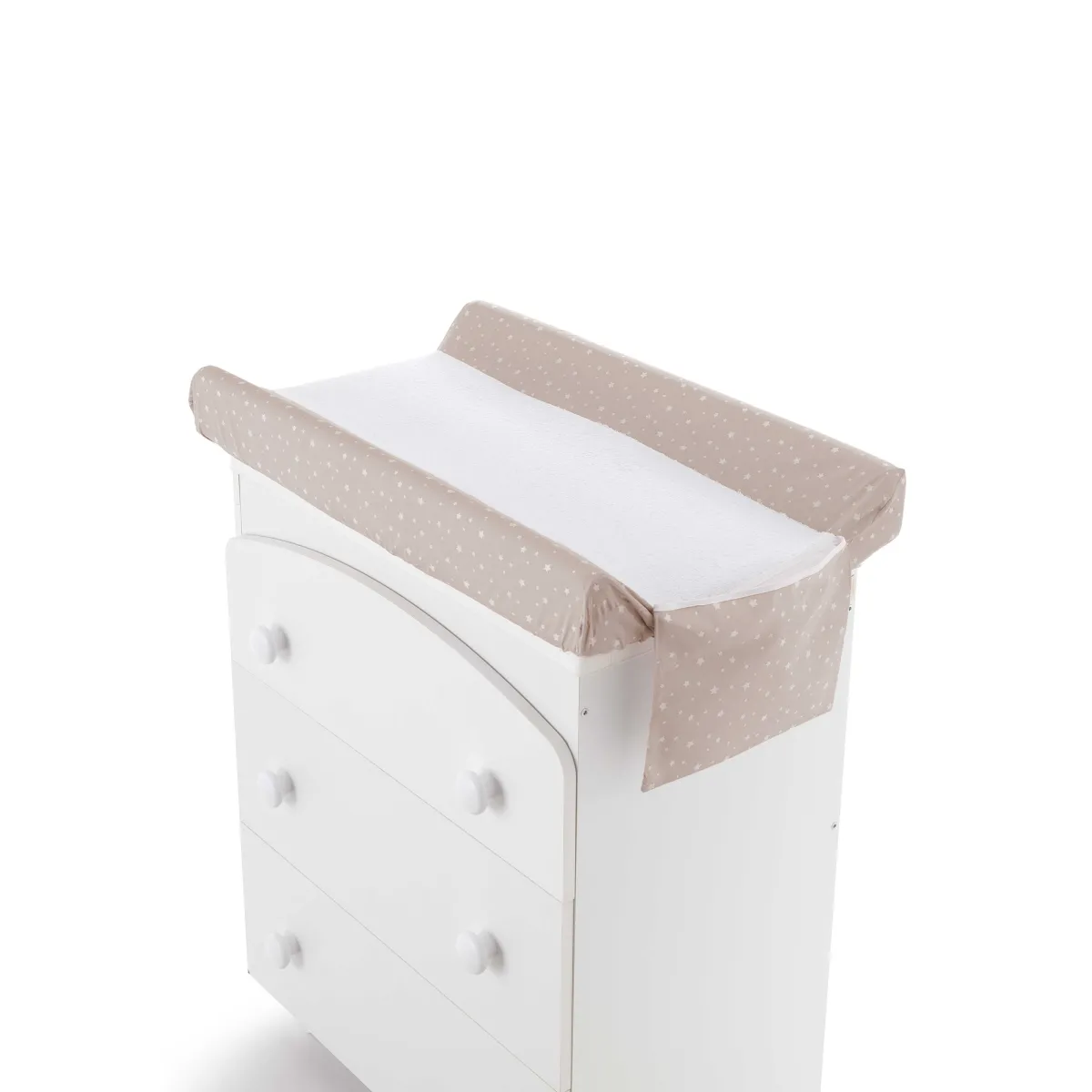 Coprifasciatoio per bagnetto con internamente spugna di cotone bianca e lateralmente tessuto fantasia stelline tortora.