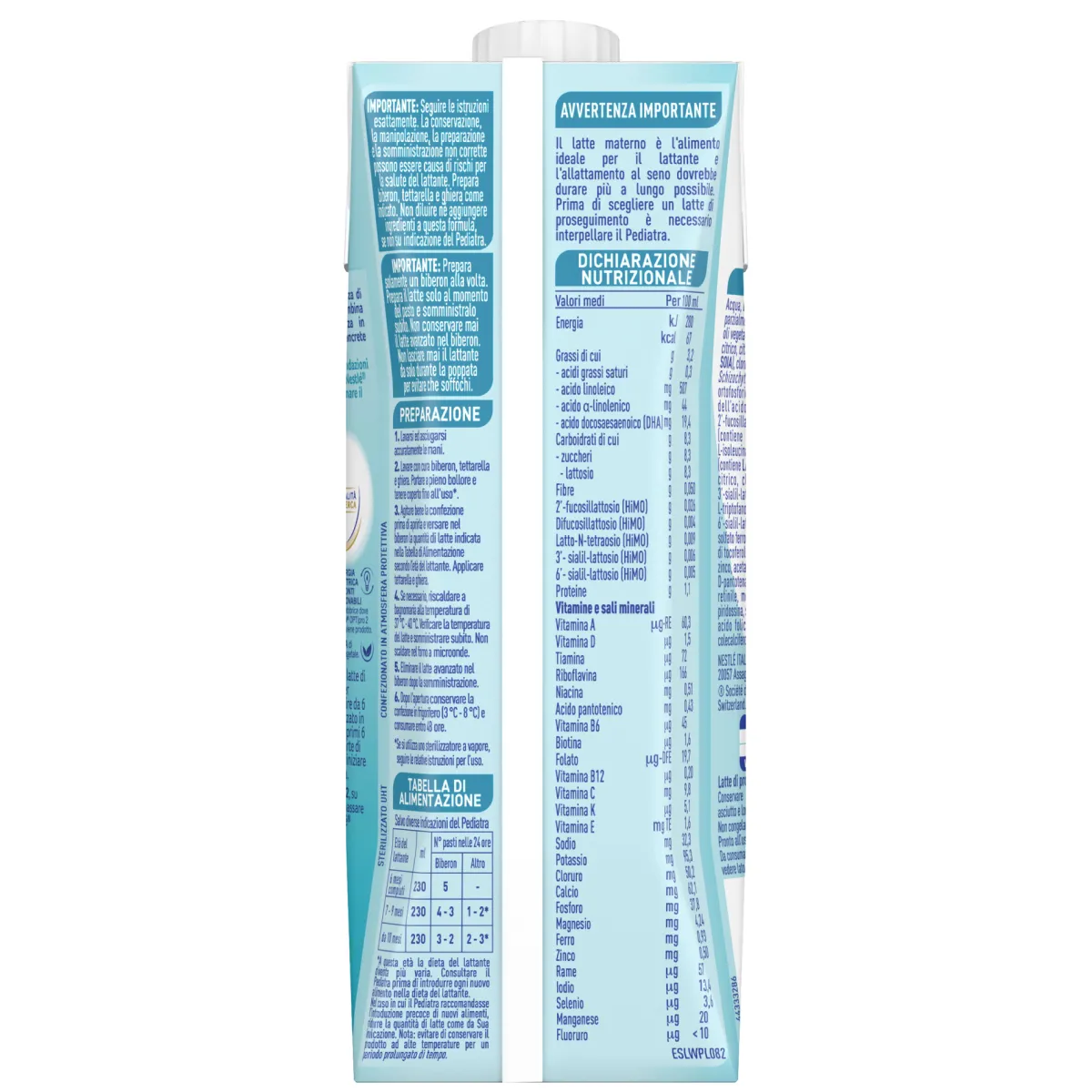 AVVERTENZA IMPORTANTE: Il latte materno è l’alimento ideale per il lattante e l’allattamento al seno dovrebbe durare più a lungo possibile. Prima di scegliere un latte formulato è necessario interpellare il Pediatra.