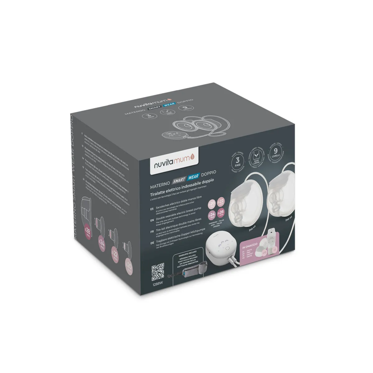 – PERSONALIZZABILE: le coppe in dotazione (con capacità 240 ml) misurano 28 mm e sono già inclusi tre riduttori da 20, 22 e 24 mm, per adattarsi a tutte le dimensioni di seno. Ogni mamma inoltre potrà personalizzare il massaggio e l’estrazione del latte scegliendo fra 27 livelli di intensità (9 per ogni fase).