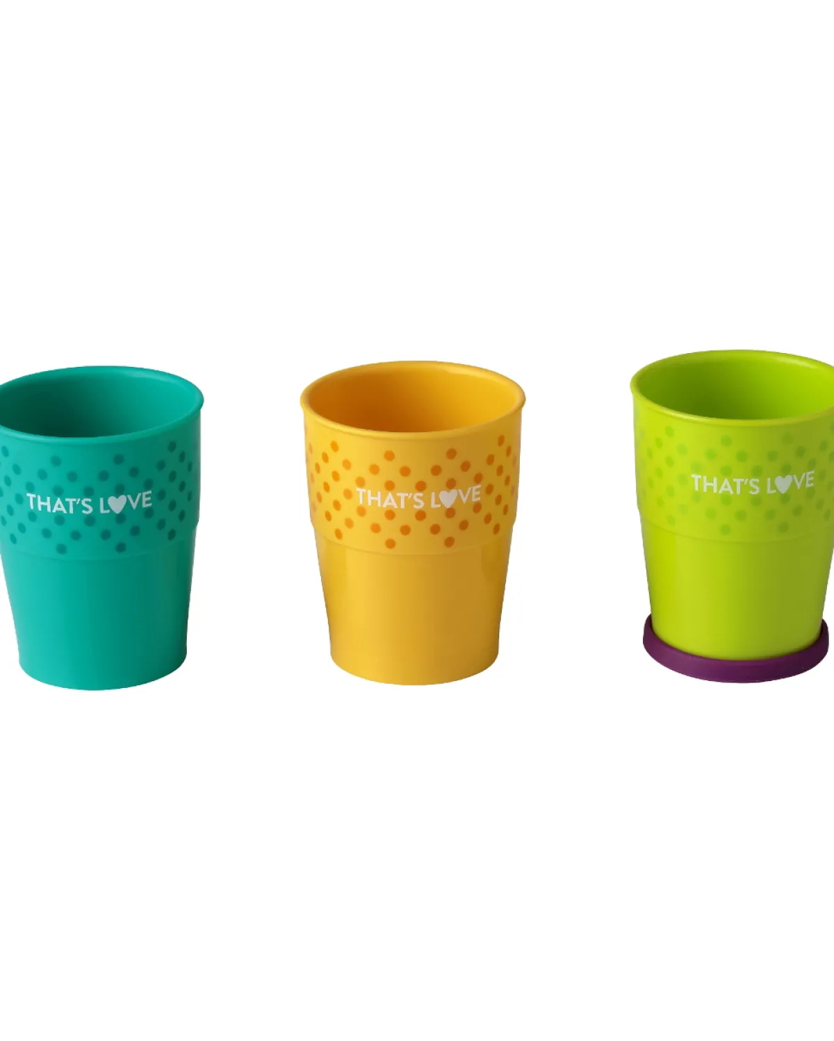 Set di tre bicchieri colorati.